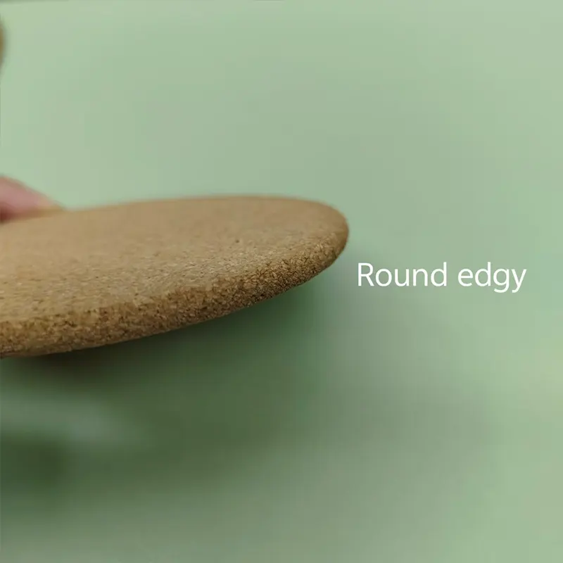 Terdapat juga butiran kecil untuk edgy cork coaster, dua jenis edgy biasanya, edgy bulat dan edgy kanan. Pusingan edgy mempunyai lebih banyak langkah pemprosesan sebab perlu digilap, juga kos yang lebih tinggi, tetapi kelihatan lebih halus, beritahu kami kesan yang anda inginkan!